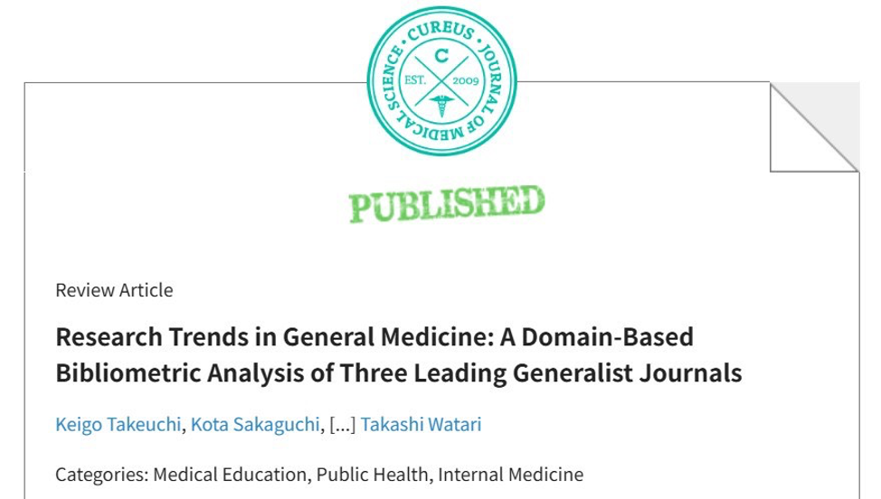 【医学生が筆頭著者に挑戦!】論文報告!~総合診療の領域別研究特性から見えたこと~