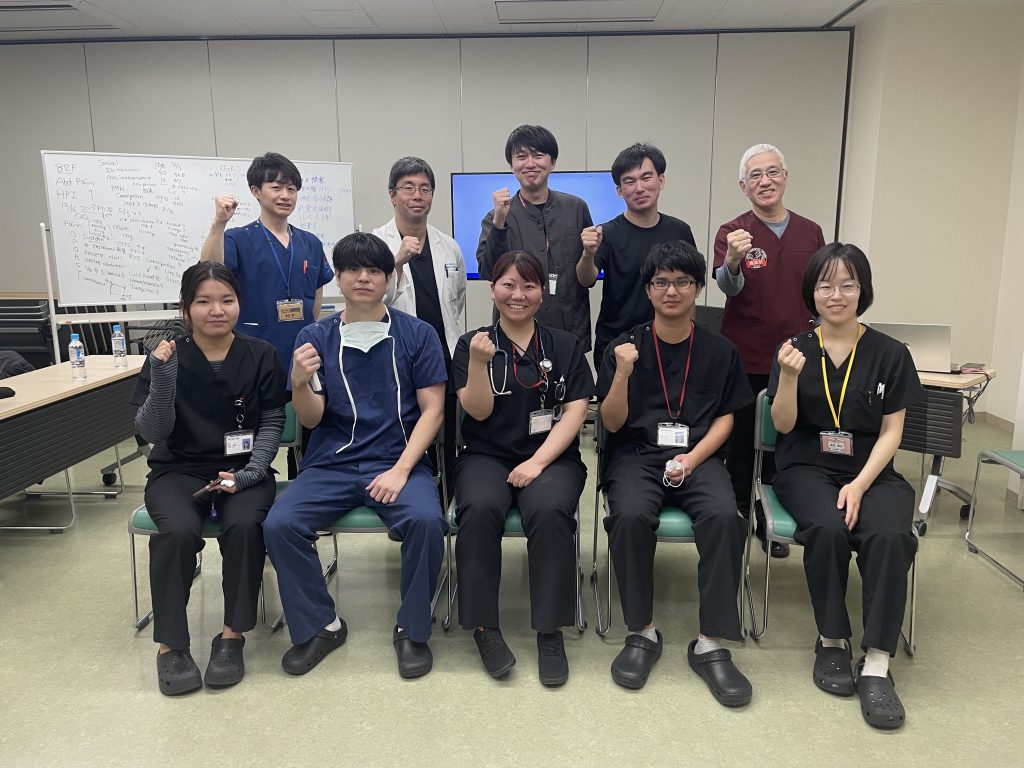 テーマ症例は「高齢女性の突然発症の強い腹痛」でした。バイタルサインや腹部所見などに非典型的な所見がありつつも、丁寧な問診及び身体診察から十二指腸穿孔の診断となった症例でした。高齢者診療の難しさと問診・身体診察の重要性を改めて実感しました。また回診中は研修医の間で活発な意見が交わされており、自分も後輩を指導するようなタイミングがあればこのような空気感を作れるようにしたいと思いました。